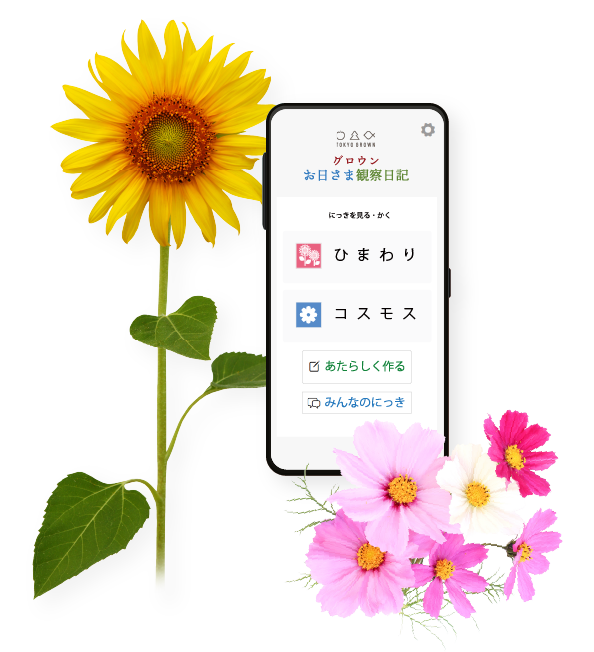 スマートフォンのアプリ上で、使用者が育てている苗、花、木などの農業・園芸に関わる育成過程(観察日記を記録できる)