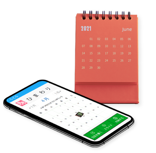 記録はカレンダー形式で内容を分かりやすく一覧表示。スライド表示も可能。