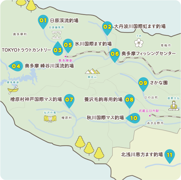 多摩エリアには数多くの釣り場があります。