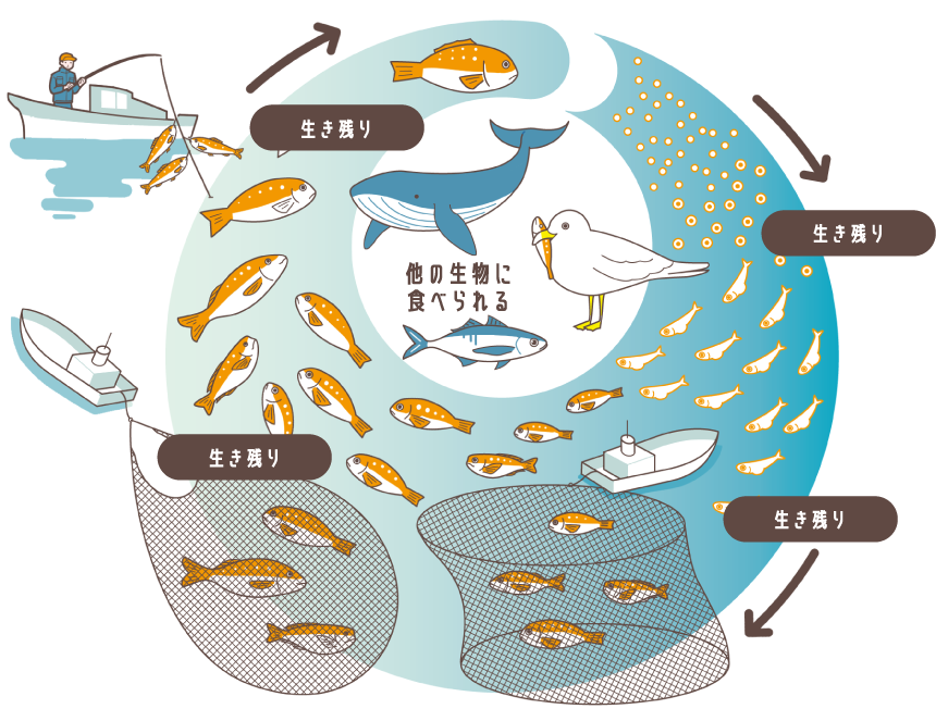 卵を産む魚をしっかりと残すことで魚をいつまでも食べることができます。