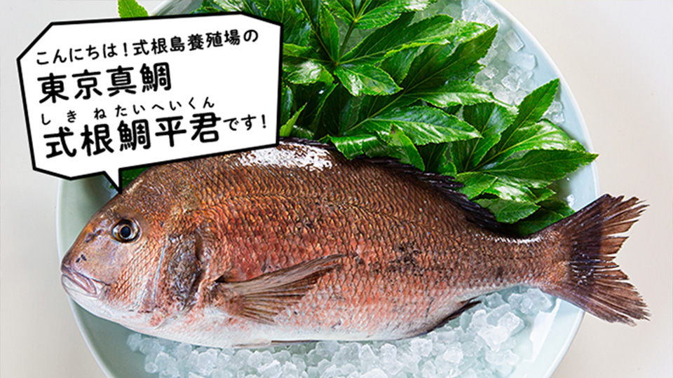式根鯛平君は式根島の海水が循環する魚の育成にとてもいい環境の中で、ストレスなくすくすくと育ち、バランスの良い配合飼料を食べながら大きくなります。お刺身としても焼き魚としてもとてもおいしいタイです。