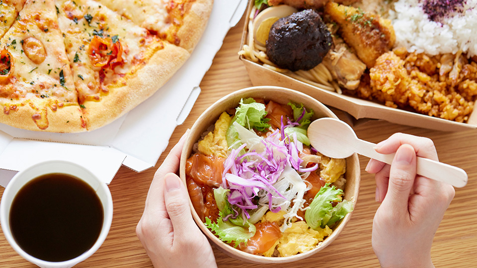 中食とは、惣菜店、弁当屋、コンビニエンスストア、スーパー及び外食店のデリバリー(宅配・出前)等で調理済みの料理を購入して家や職場などで食べる食事のことをいいます。