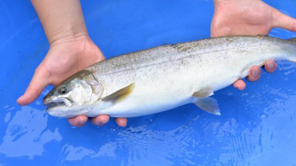 1998(平成10)年に旧東京都水産試験場奥多摩分場にて、当時の先端技術を活用し、大型となる3倍体ヤマメ「奥多摩やまめ」が開発されました。大型化によって、刺身や寿司の、ムニエルなどの料理で味わうことができるほか、燻製や干物などの加工品も商品化されています。また、通常のヤマメに比べてタンパク質や脂肪が多く含まれています。そのため、成分の季節的変化が少なく、肉質が安定しており、産卵期の腹部の厚みが落ちることがなく、一年中おいしく食べられます。