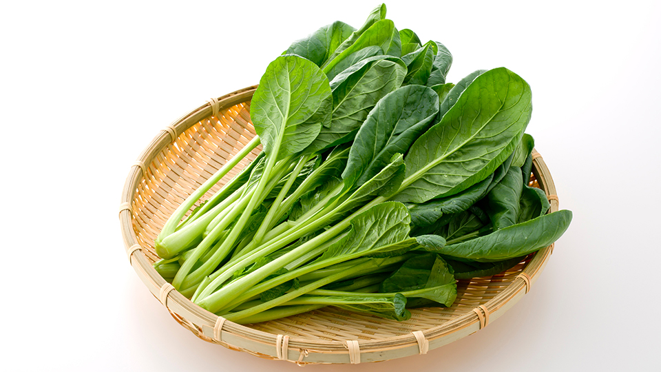 通年で出荷される小松菜ですが、12月から2月にかけて霜が降りた後のほうがあくが抜けて甘味が増し、葉も厚く柔らかくなっておいしくなります。また、栄養価が極めて高く、カルシウムはホウレンソウの5倍、カロテンやビタミンCも豊富に含んでいます。