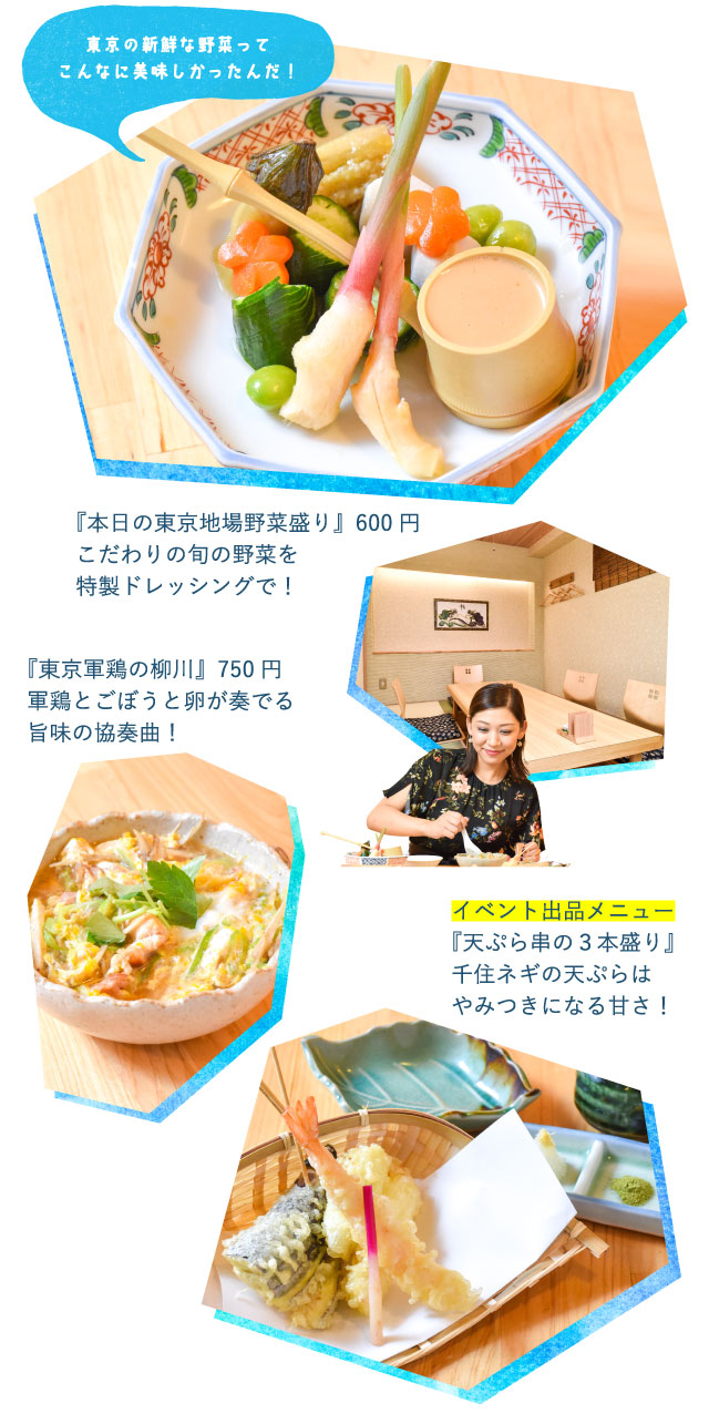 皆さんも、女子トモや恋人と「東京産の恵み」をぜひ!!「東京の食ってなに?」って、はじめは全然わかりませんでした。でも、いろんなお店を訪れて、その食文化の豊かさに気づくことができました。野菜もお肉もお魚も素晴らしいものが手に入る。これって、スゴいことですよね。今回の食べ歩きで、すっかり東京の食のファンになりました。まだまだ、素敵なお店があるそうなので、これからもたくさんご紹介していきますね!