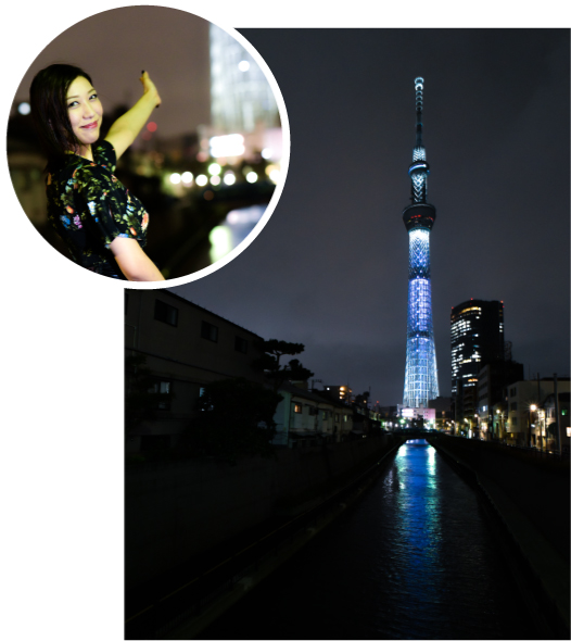 東京スカイツリーのインスタ映えスポットをご紹介♪今回取材した「押上よしかつ」さんからも徒歩3分で行ける「十間橋」は東京スカイツリーの絶景ポイントです!十間橋から見えるのは北十間川の水面に映る“逆さツリー”。夕暮れ時になるとカメラを持った人が続々と集まります。