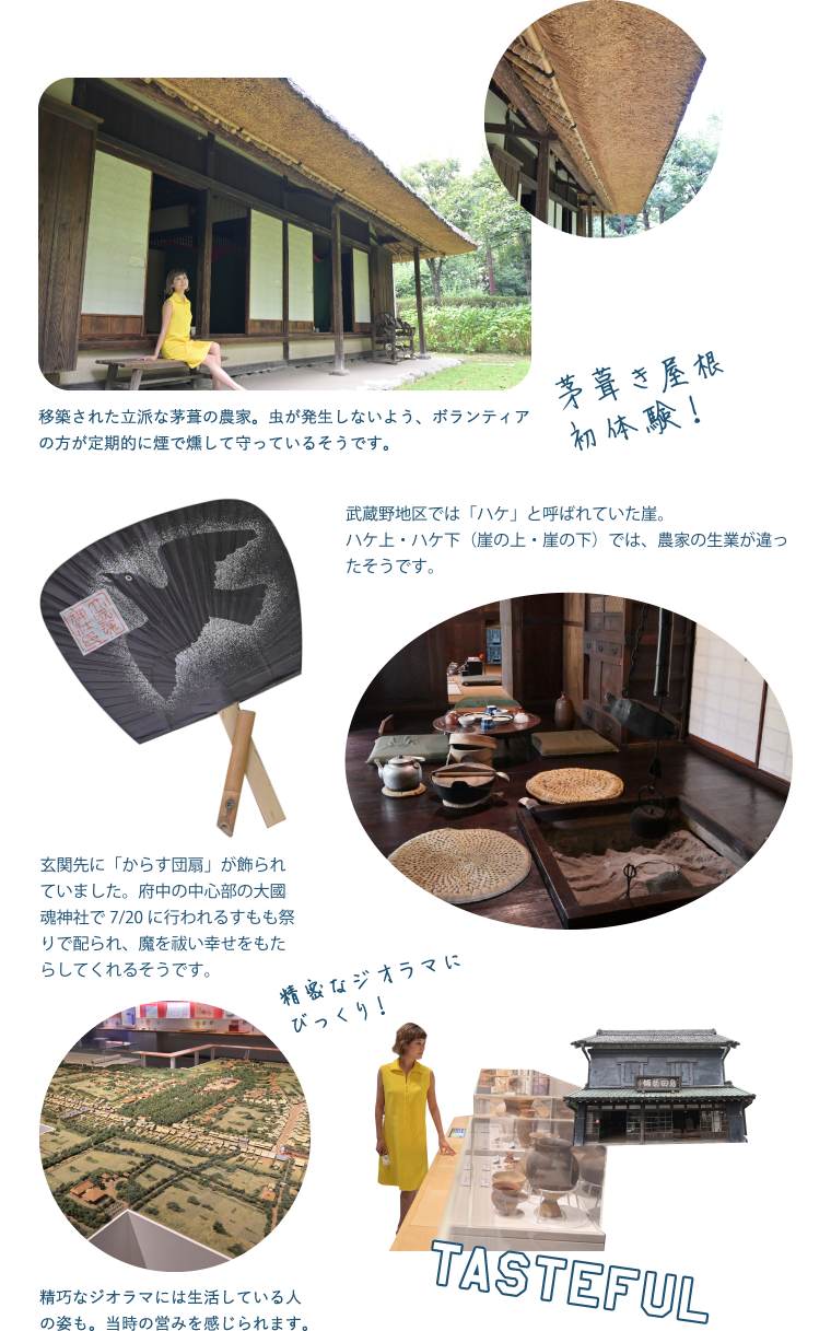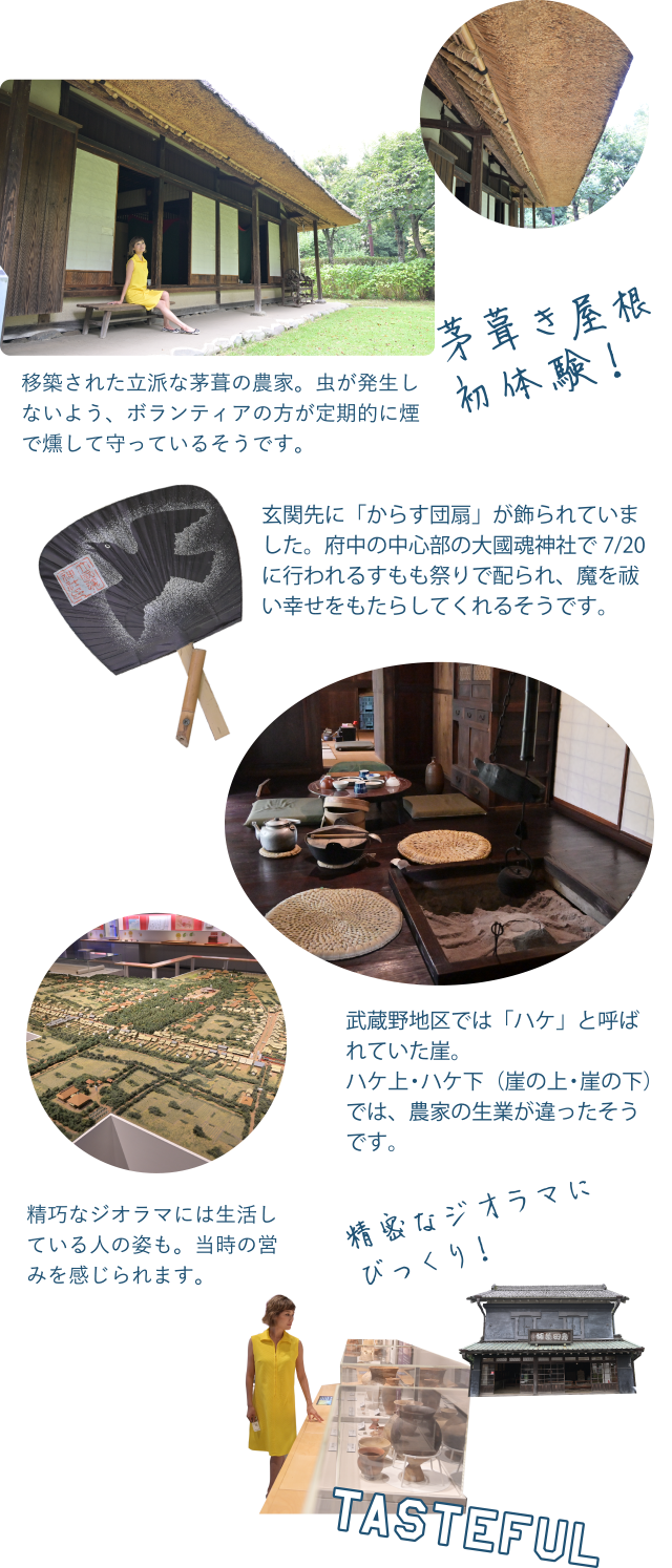 農家や町家など、歴史的建築物が移築されたエリアは、まるで映画のセットに迷い込んだよう。府中にしか自生していない幻の花「ムサシノキスゲ」や、梅・桜や紫陽花、萩のトンネルなど、一年を通して様々な花が楽しめます。館内には知的好奇心をそそる充実した展示物が並び、歴史や文化をじっくり学ぶことができます。2018年にリニューアルされたプラネタリウムでは、1億個もの星を再現する最新鋭の投映機を導入。大人から子どもまで、一日中楽しめる博物館です。