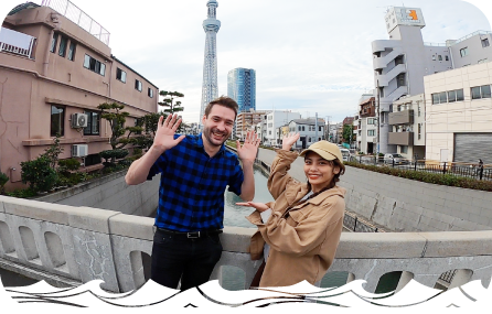 最後は、レストラン近くにある東京スカイツリーの絶景を堪能し、美しい橋の前で自撮りで何枚も撮影を行いました。魚釣りから始まって、伝統的な日本料理に舌鼓をうち、最後はモダンな建造物の観光と本当に盛りだくさんな、あっという間の充実した1日となりました。