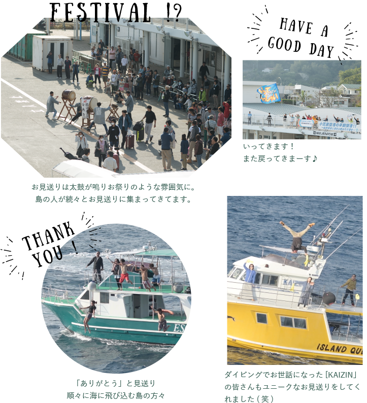 見送ってくれる島のみんなに「いってきます!」